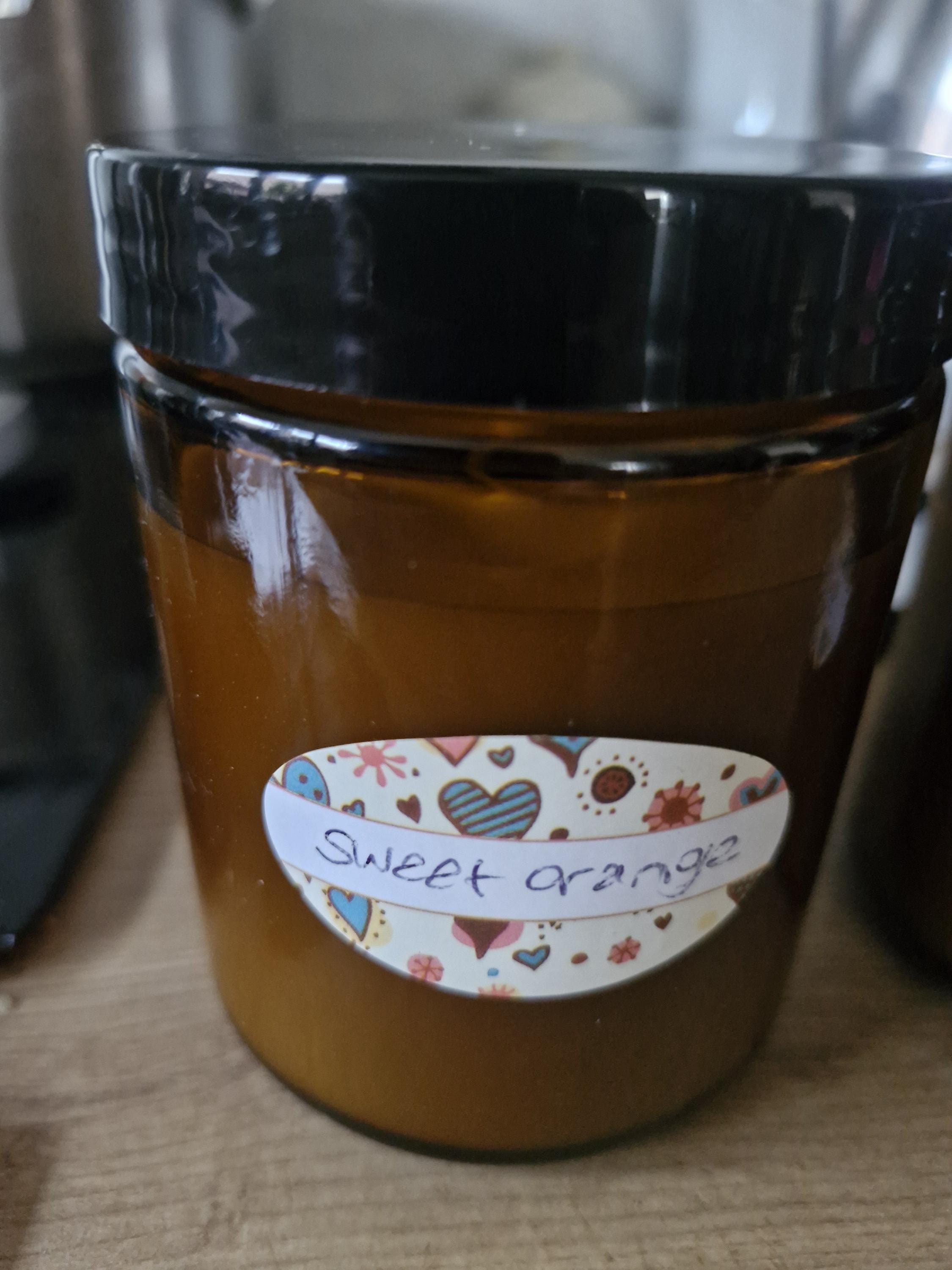 This is a hand made candle, scented with sweet orange.